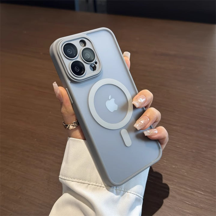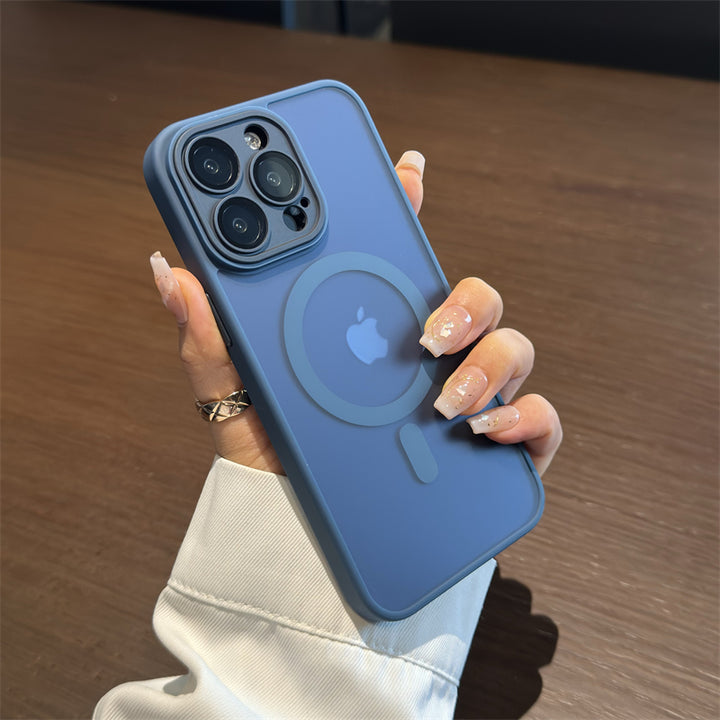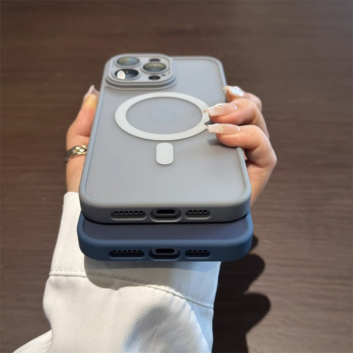 Apple frosted silicone anti-fall mobile phone case with magnetic suction