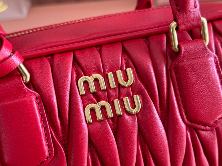 ARCADIE MATELASSÉ BAG 24 IN CERISE RED CALFSKIN GOLD HARDWARE