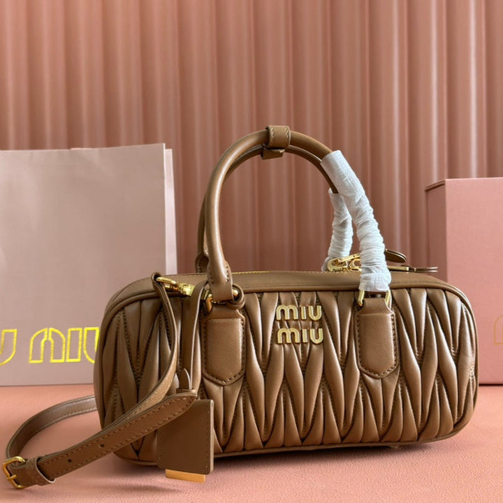 ARCADIE MATELASSÉ BAG 27 IN SEPIA BROWN CALFSKIN GOLD HARDWARE