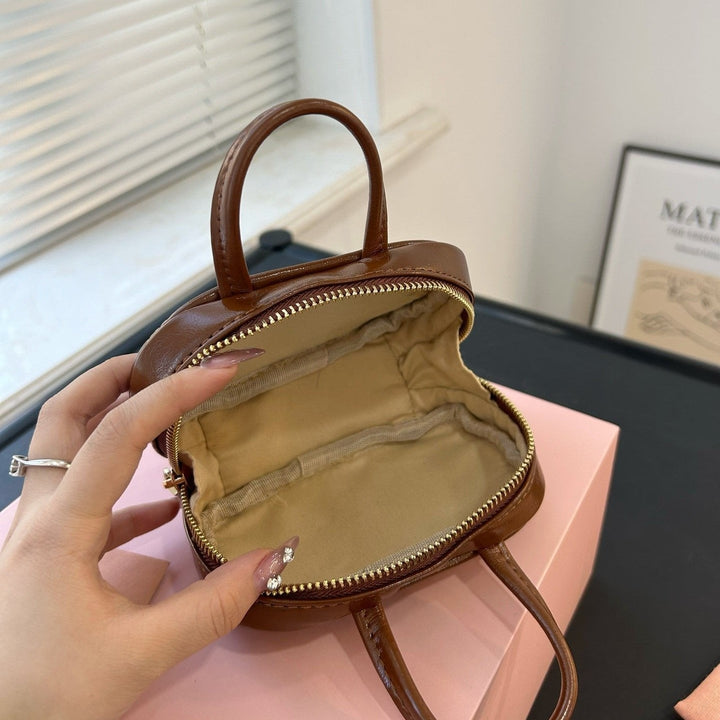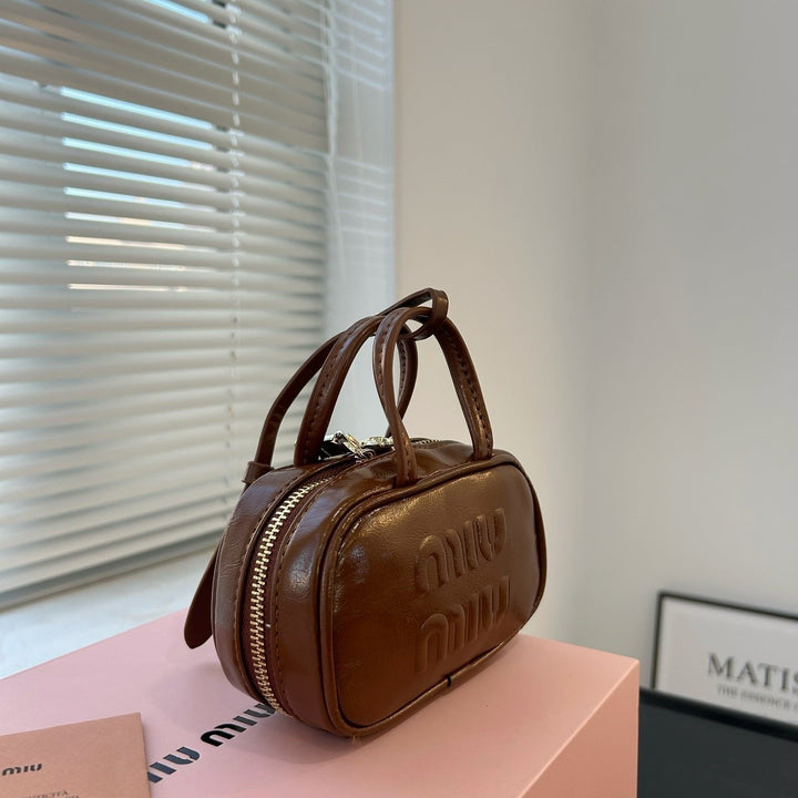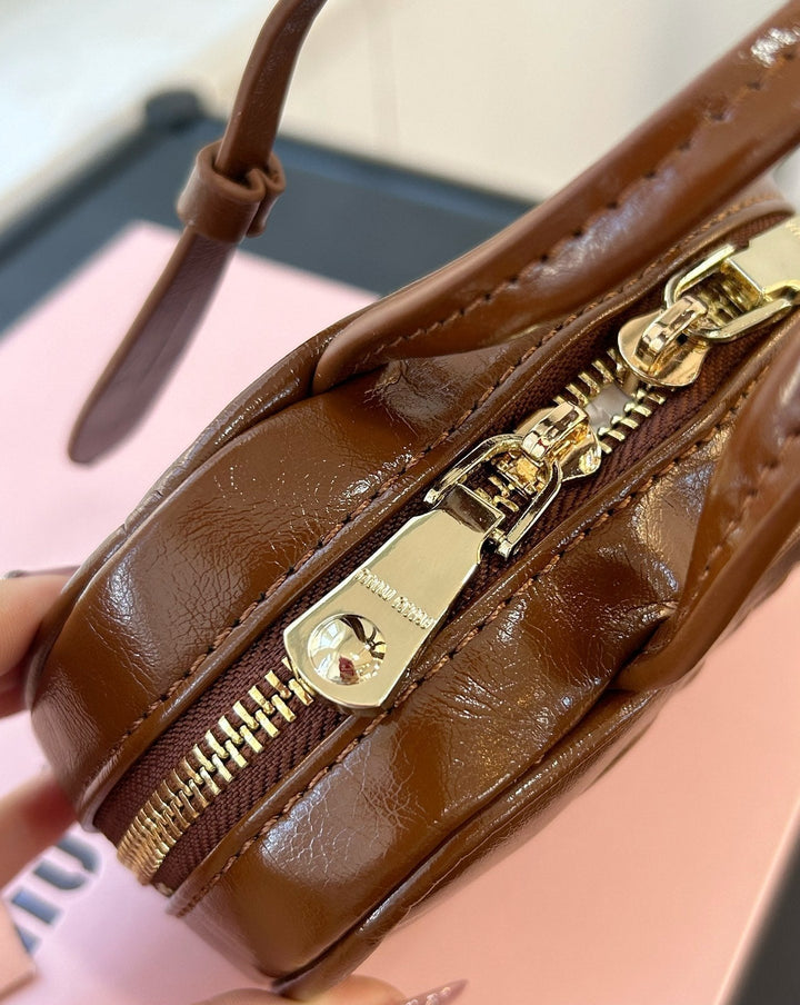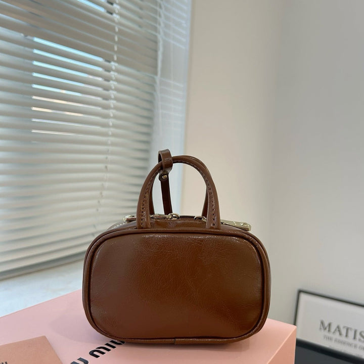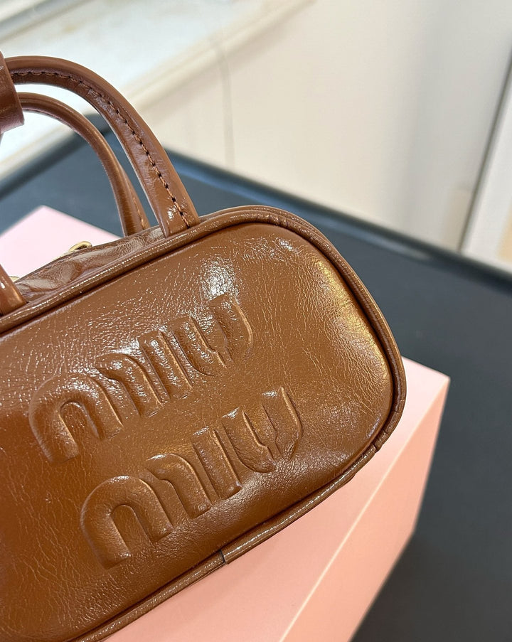 BEAU MINI TOP HANDLE BAG 14 IN PECAN BROWN CALFSKIN