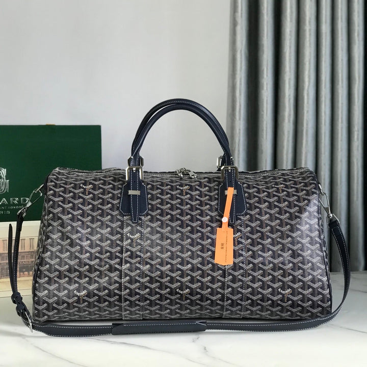 BOSTON 50 BAG IN NAVY BLUE GOYARDINE CANVAS AND CALFSKIN TRIM
