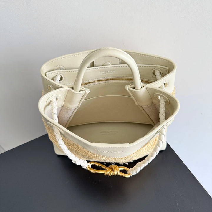 BOTTEGA VENETA 25S SMALL ANDIAMO 25 IN IVORY CALFSKIN AND RAFFIA