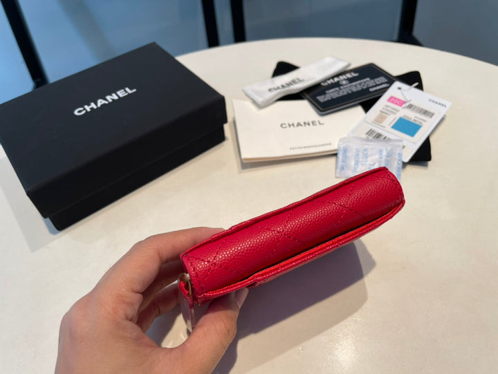 CC ZIPPED COIN PURSE 11 RED GRAINED CALFSKIN