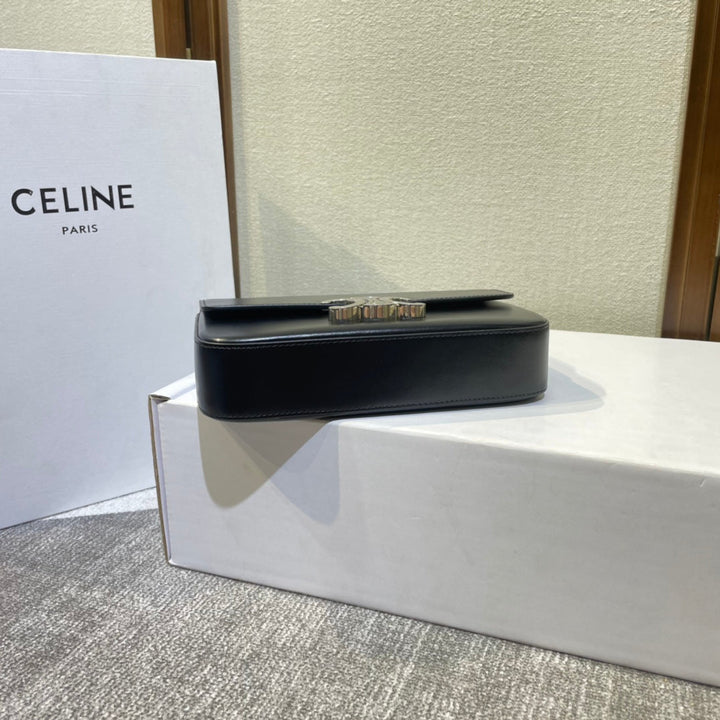 CHAIN EMBOSSED ARMPIT BAG 20 IN BLACK CALFSKIN SILVER HARDWARE