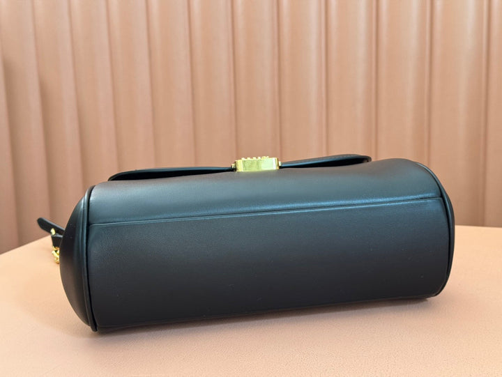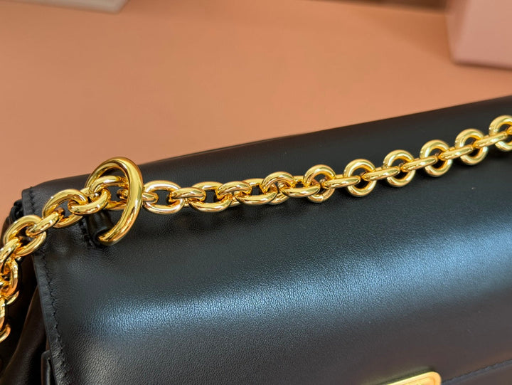 CHAIN SHOULDER BAG 24 IN BLACK PATENT SMOOTH CALFSKIN