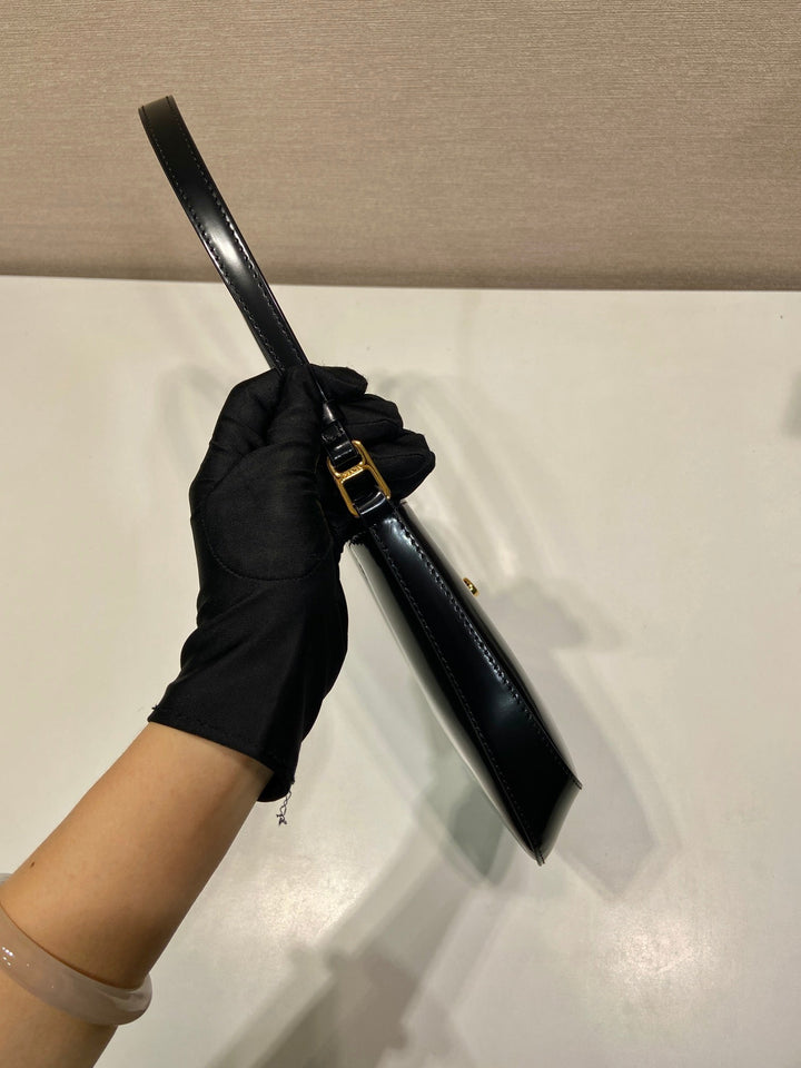 CLEO SHOULDER BAG 22 IN BLACK BRUSHED LAMBSKIN WITH CLASP CLOSURE