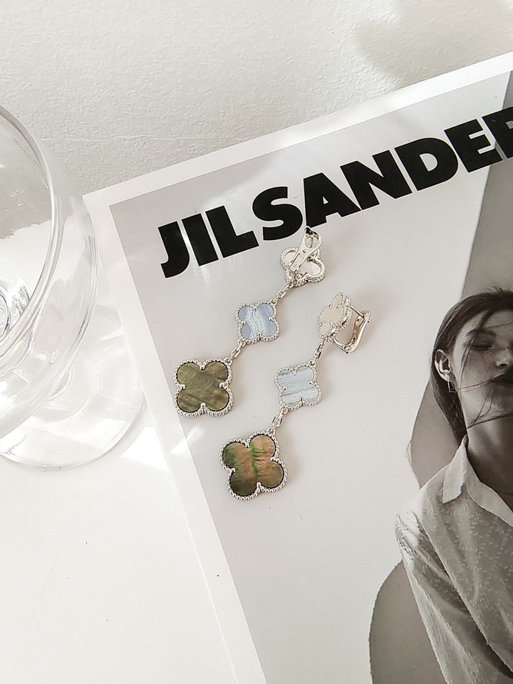 ˇFashion StreetˇCLOVER 3 MOTIFS CHALCEDONY DARK MOP WHITE GOLD EARRINGS