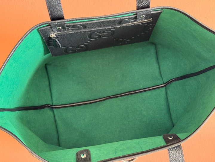 EMBLEM MEDIUM TOTE BAG 30 IN BLACK GG CALFSKIN