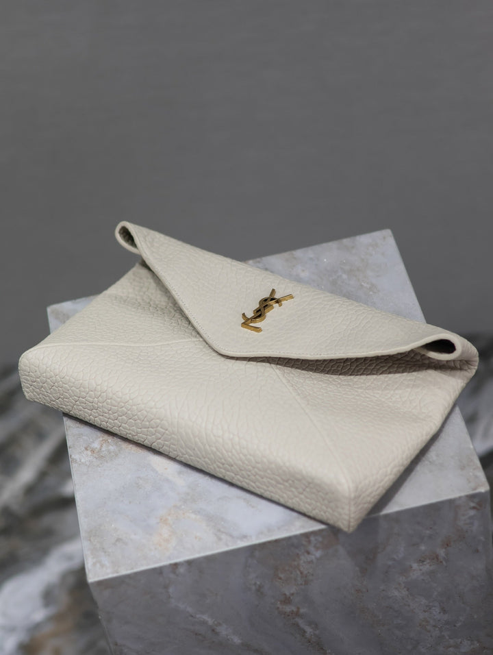 ENVELOPE CLUTCH 29 IN WHITE LAMBSKIN COPPER LOGO