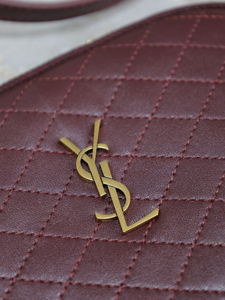 GABY ZIPPED POUCH 19 IN WINE RED QUILTED LAMBSKIN GOLD HARDWARE