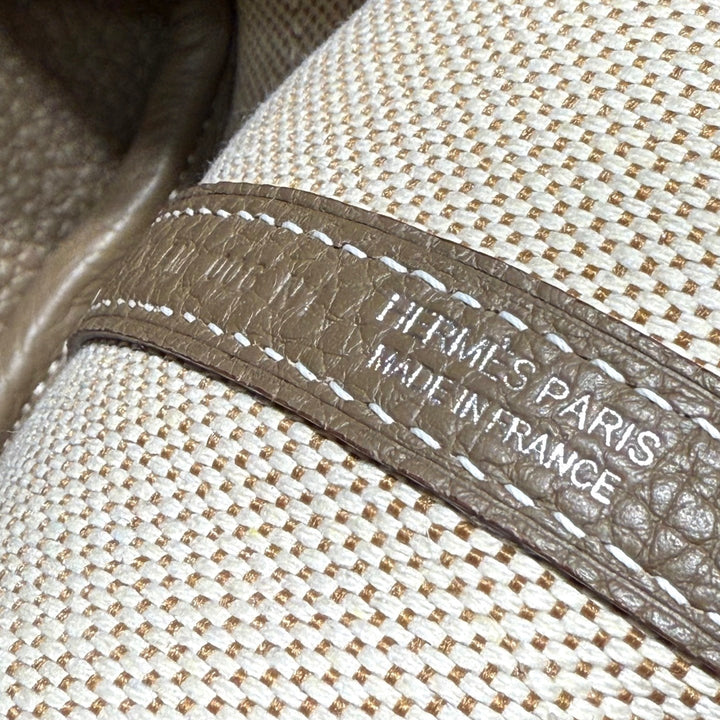 GARDEN PARTY 23CM IN WHITE TOILETS COTTON CANVAS AND TAUPE CALFSKIN