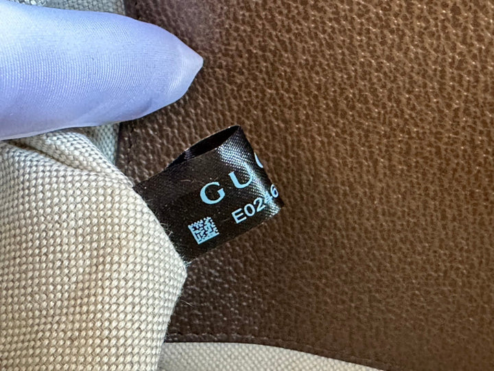 GG OPHIDIA SMALL 24 IN BEIGE CANVAS AND BROWN CALFSKIN