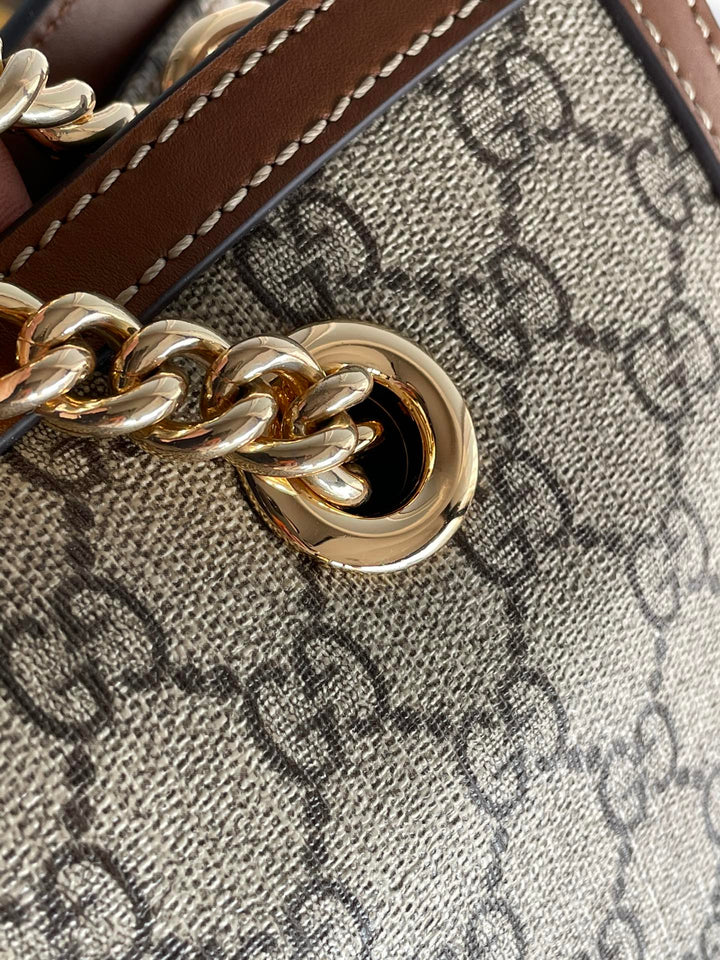 GG PADLOCK LARGE 35 SHOULDER BAG BEIGE CANVAS AND BROWN CALFSKIN