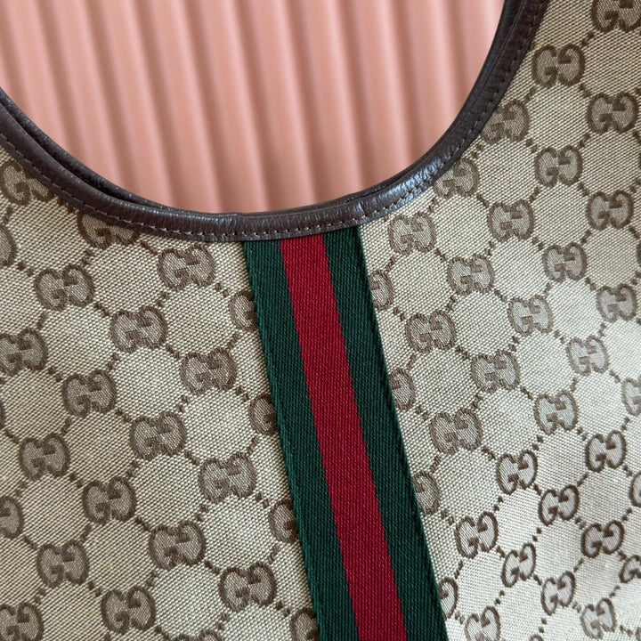 GUCCI 25S GIGLIO LARGE TOTE BAG 50 IN BEIGE AND DARK BROWN CANVAS