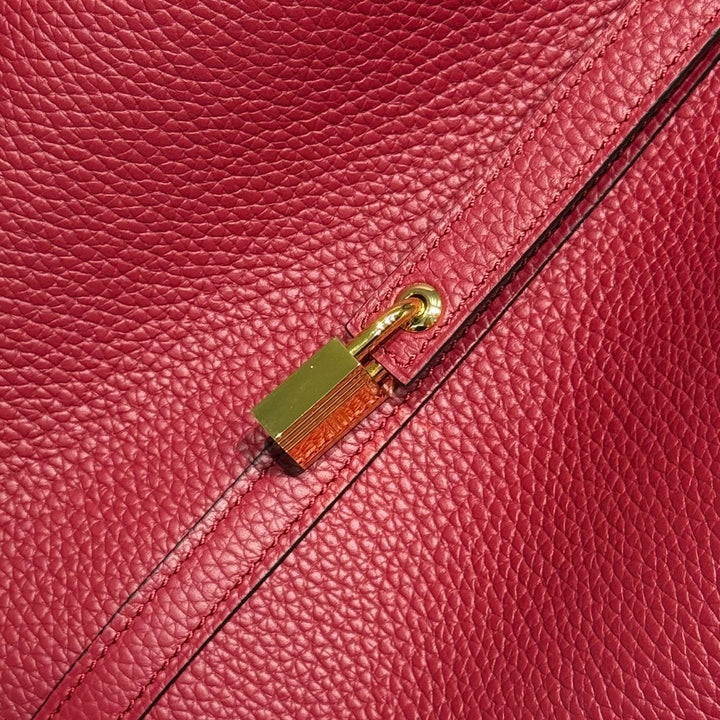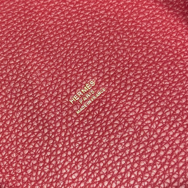 HERMES 25S PICOTIN LOCK 22 IN ROSSO ANCORA RED CALFSKIN GOLD HARDWARE