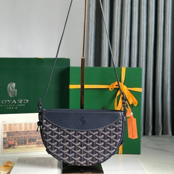 HIRONDELLE BAG 25 IN NAVY BLUE LAMBSKIN AND GOYARDINE CANVAS