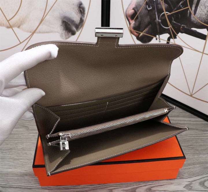 HM CLUTCH CONSTANCE 20.5 KHAKI CALFSKIN SILVER HARDWARE