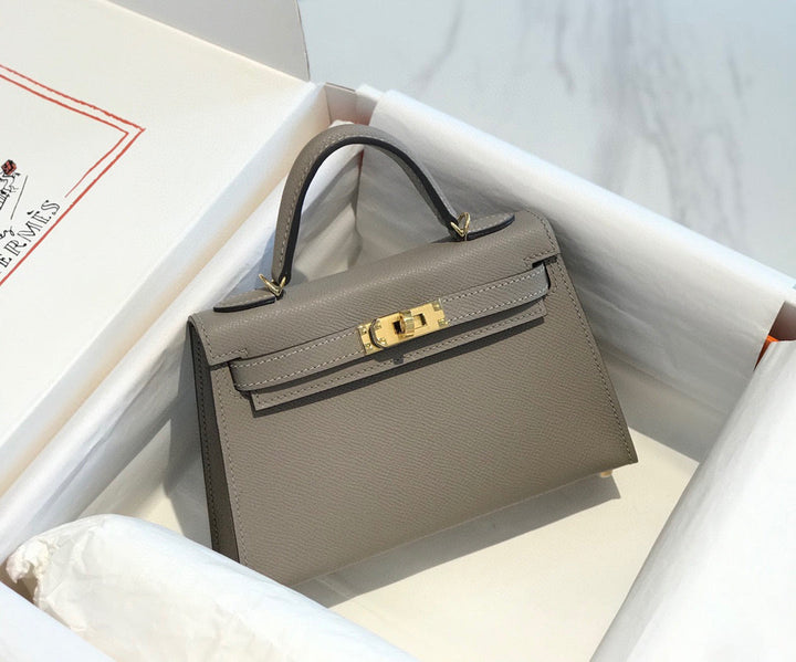 HM KELLY MINI 20 LIGHT GREY EPSOM GOLD HARDWARE