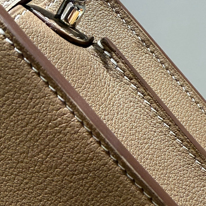 HM ROULIS 18 MINI BAG IN DARK BROWN CALFSKIN SILVER-TONE HARDWARE