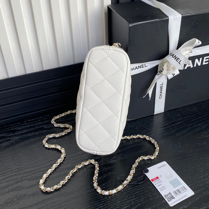 HOBO BAG 21 IN WHITE GRAINED CALFSKIN GOLD HARDWARE