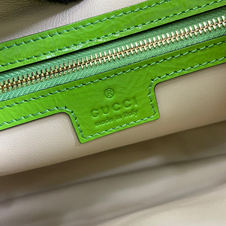 JACKIE SMALL SHOULDER BAG 27 IN LIME GREEN CRACKED LACQUER CALFSKIN GOLD HARDWARE