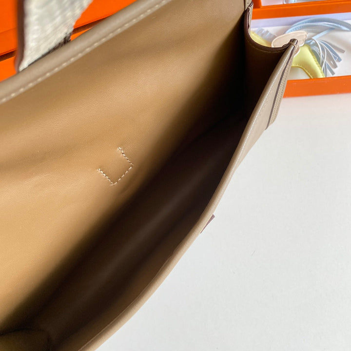 JIGE ELAN 29 CLUTCH IN CHOCOLATE BROWN CALFSKIN WITH WHTE LIZARD SKIN (MADE-TO-ODER)