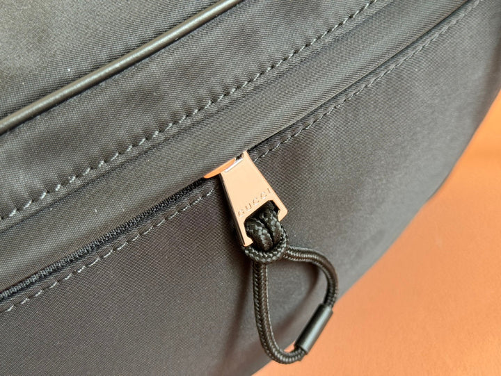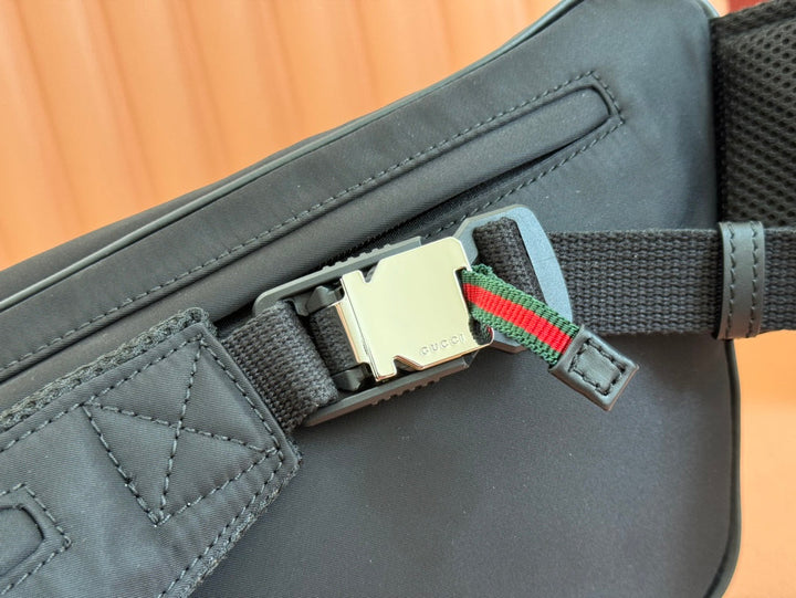 LARGE BELT BAG 32 IN BLACK CANVAS GREEN AND RED WEB DETAIL