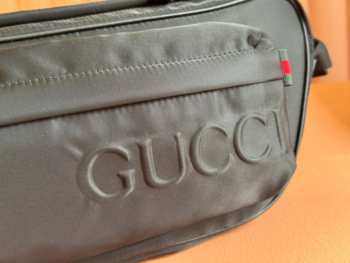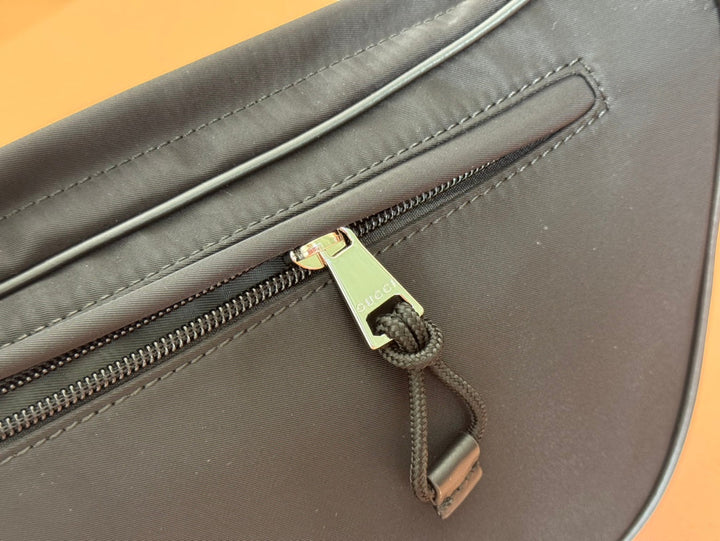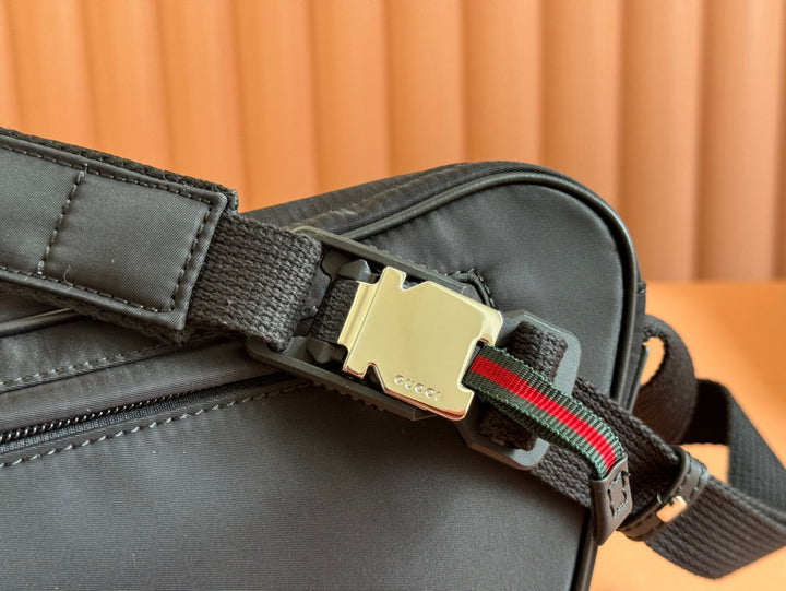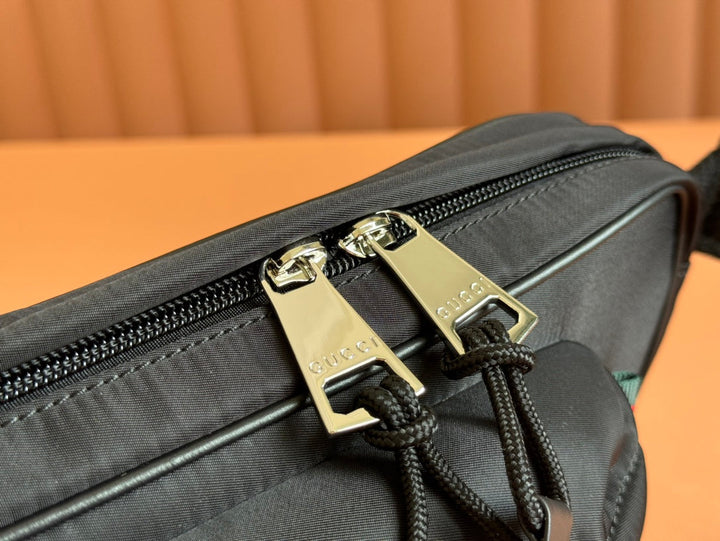 LARGE BELT BAG 34 IN BLACK CANVAS GREEN AND RED WEB DETAIL