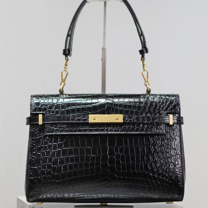 MANHATTAN HANDBAG 32 IN BLACK CROCODILE-EMBOSSED CALFSKIN GOLD HARDWARE