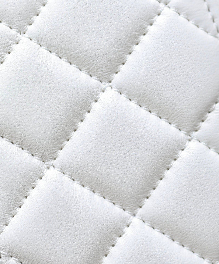 - Color: White leather, Silver hardware