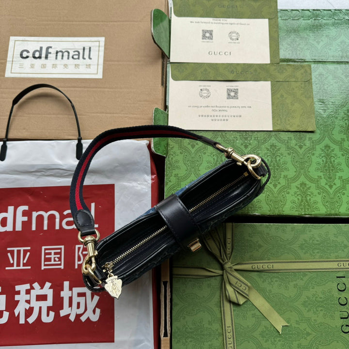 ?Material: Embossed denim and calfskin trim