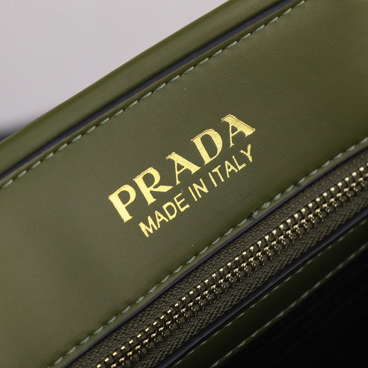 PRA LARGE 39 TOTE IN OLIVE GREEN CALFSKIN GOLD HARDWARE