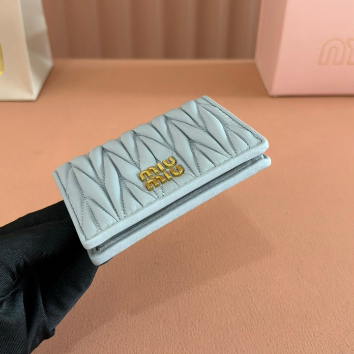 SMALL MATELASSÉ NAPPA LEATHER WALLET BLUE GRAY
