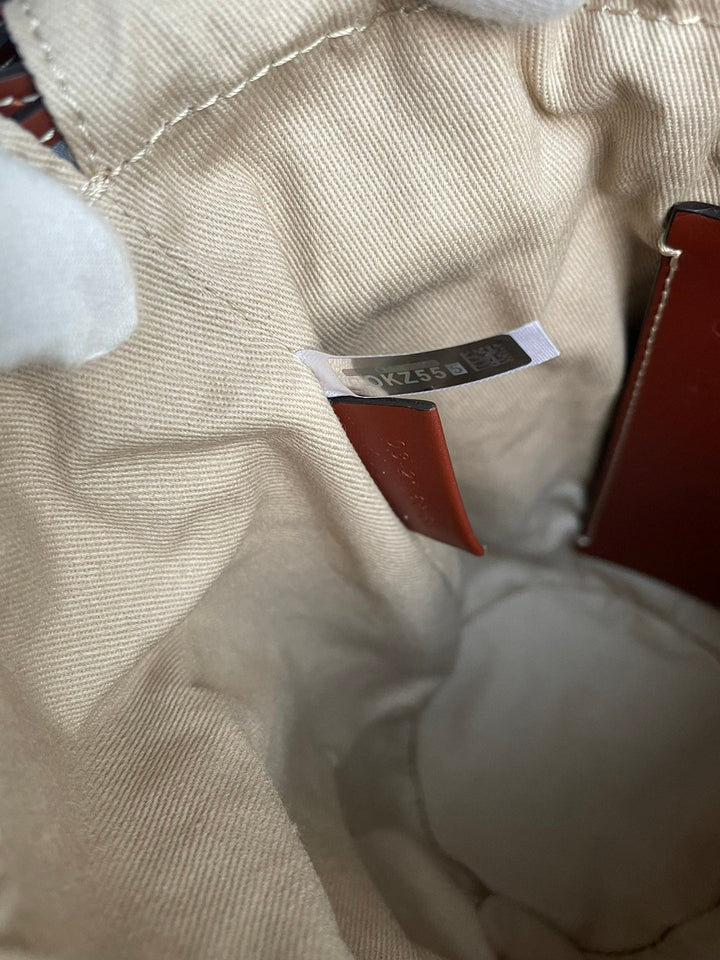 SMALL WOODY BASKET 17 IN NATURAL FIBERS BROWN WEBBING DARK BROWN CALFSKIN
