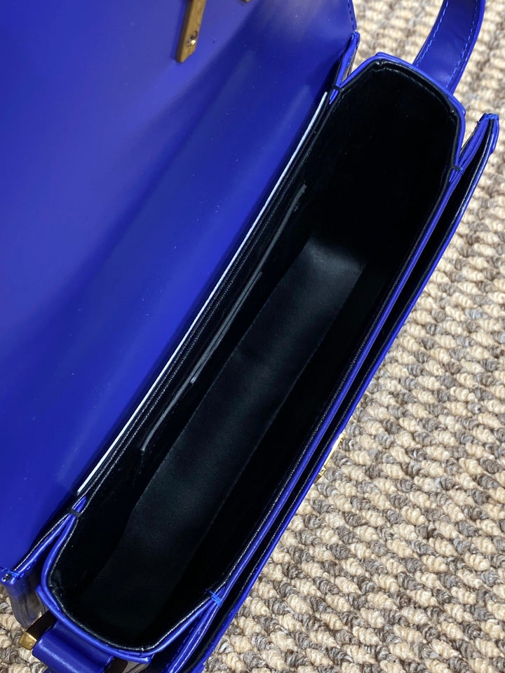 SOLFERINO SMALL SATCHEL 23 IN INDIGO BLUE CALFSKIN GOLD HARDWARE
