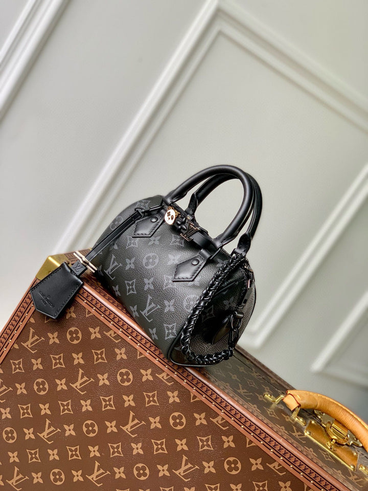 SPEEDY BAG 18 IN BLACK MONOGRAM COATED CANVAS BLACK HARDWARE