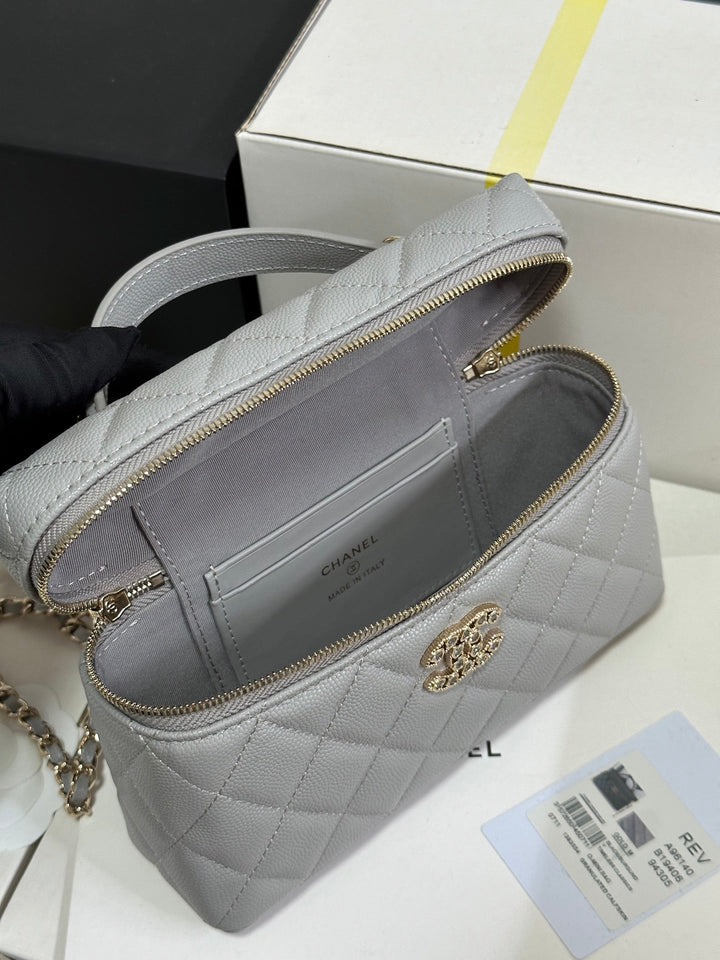 STRASS VANITY QUILTED CASE 19 IN GREY CALFSKIN WITH GOLD METALLIC