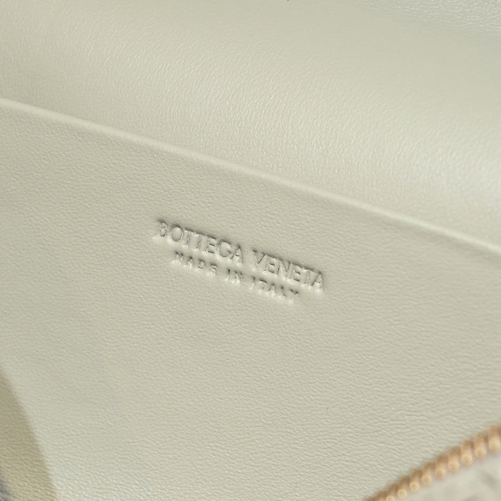 ?Padded Intrecciato leather teen clutch with leather braided metal chain