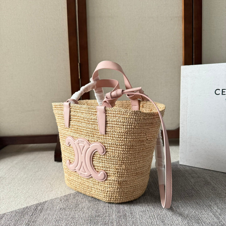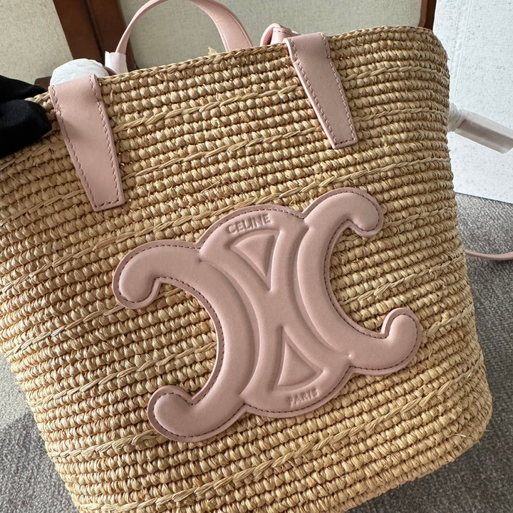 TEEN SUPPLE CELINE 22 PINK IN RAFFIA AND CALFSKIN