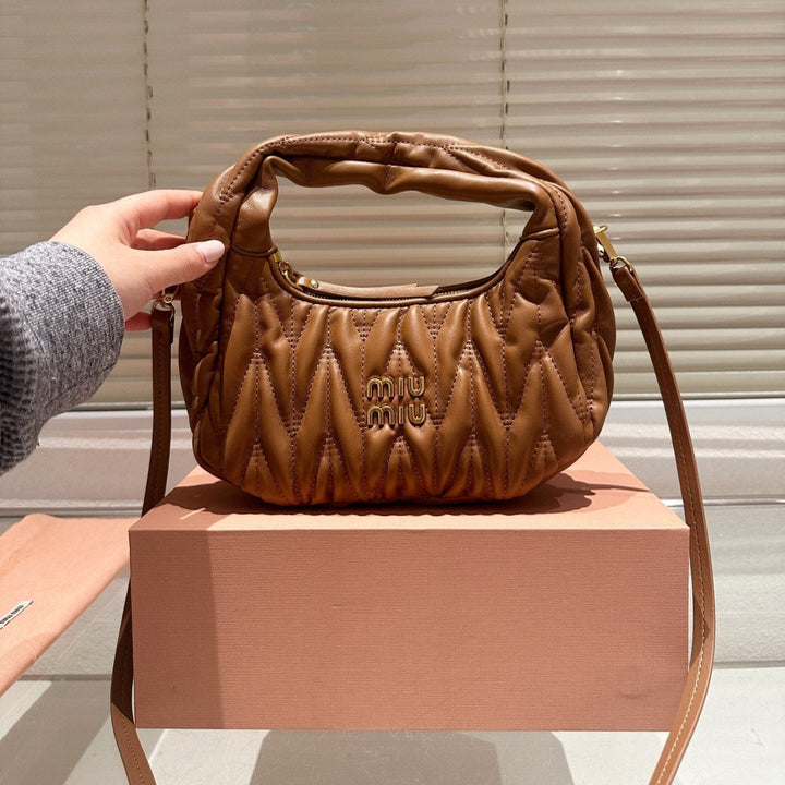 WANDER MATELASSÉ NAPPA HOBO BAG 23 IN CARAMEL BROWN LAMBSKIN