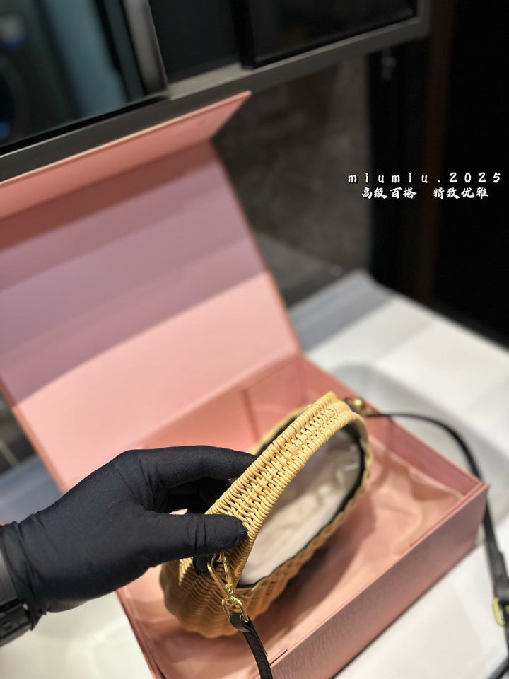 WANDER WICKER HOBO BAG 23 IN TAN BROWN HANDWOVEN WITH BLACK CALFSKIN LOGO